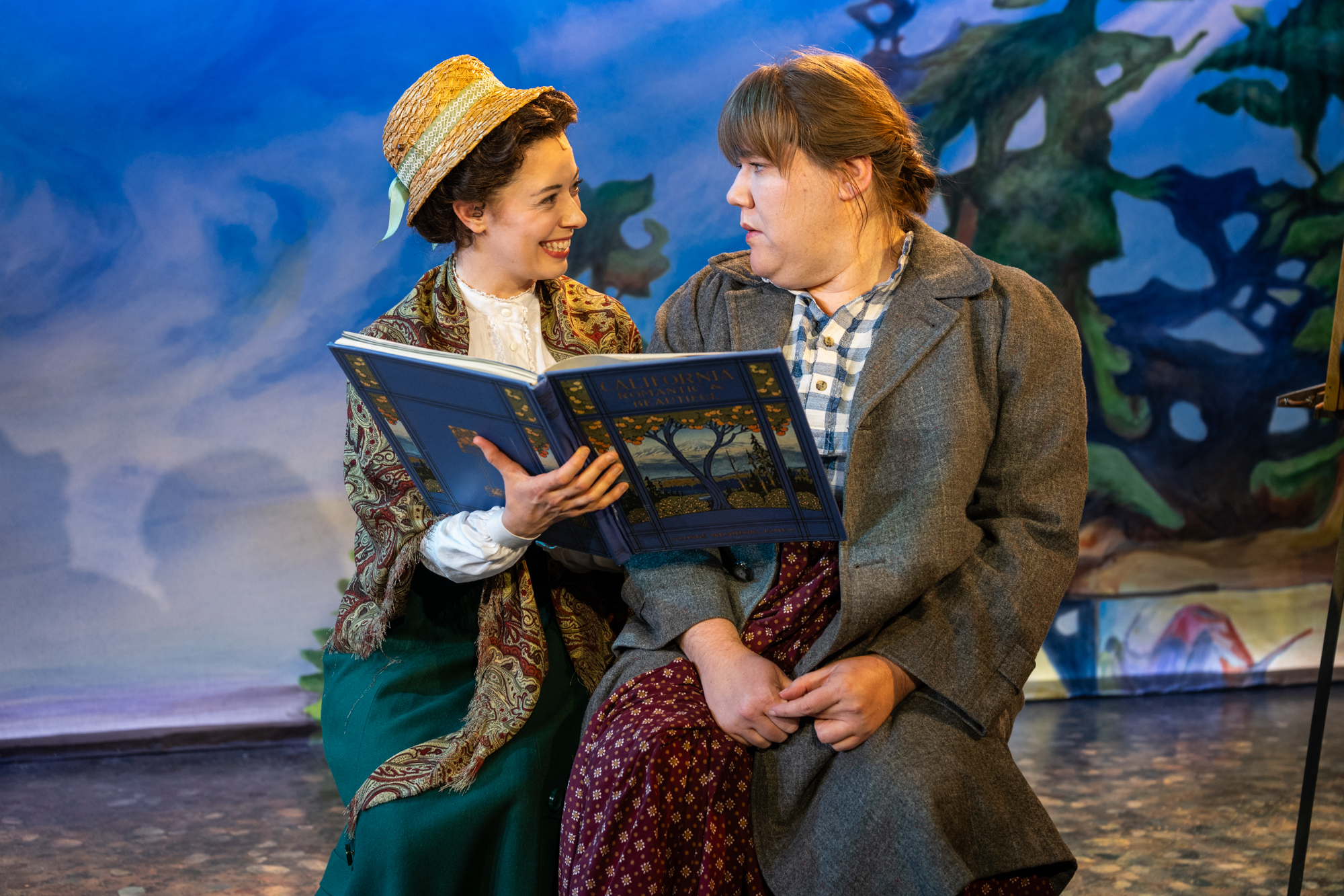 The hardened Sarah is played by the wonderful Kelly Doherty, who originated the role at Northern Sky Theater in 2024. It’s easy to see why she followed this piece to the Milwaukee Rep. Dry humor, prickly demeanor, tugging at the heartstrings – she deftly does it all. Eva Nimmer, last seen in the Rep’s It’s a Wonderful Life: A Live Radio Play, blends softness and spirit for Nora Peterson, proving a bright-eyed, charismatic foil for Doherty’s Sarah. The two create real magic in quiet moments, like Nora tenderly sharing a book with Sarah, who never learned to read.