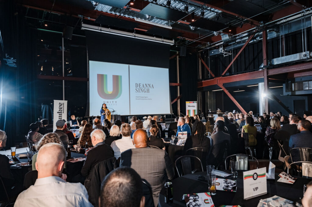 Deanna Singh, a social entrepreneur, author and 2023 Unity Award honoree, emceed the evening, leading a conversation with each of this year’s winners: Kurt Owens of Bridge Builders; Jack Bolog of People’s Table; Element Everest-Blanks of the Marcus Center, HYFIN, and the Culture Plug; Ken Ginlack of Serenity Inns; Katie Cummings of Pink Umbrella Theater Co.; and Levi Stein of The Friendship Circle.