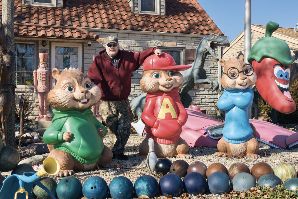 Over decades, Richard Serocki has amassed an amazing assemblage of fanciful creations outside his home. A pink Cadillac sinking into the ground. A big boy. An old-timey tractor. A buddha. A “beerwolf.” Dinosaurs. Fire hydrants done up as minions and packers. Check out the menagerie at 4531 S. Lake Dr.
